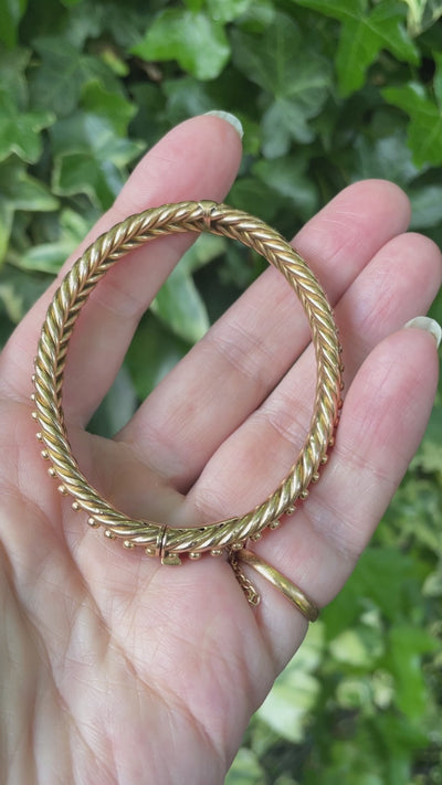 Victorian 15ct Gold, woven, hinged bangle from the late 19th Century c1890
